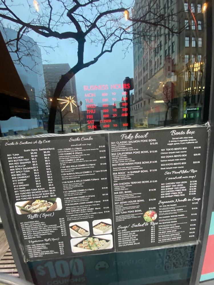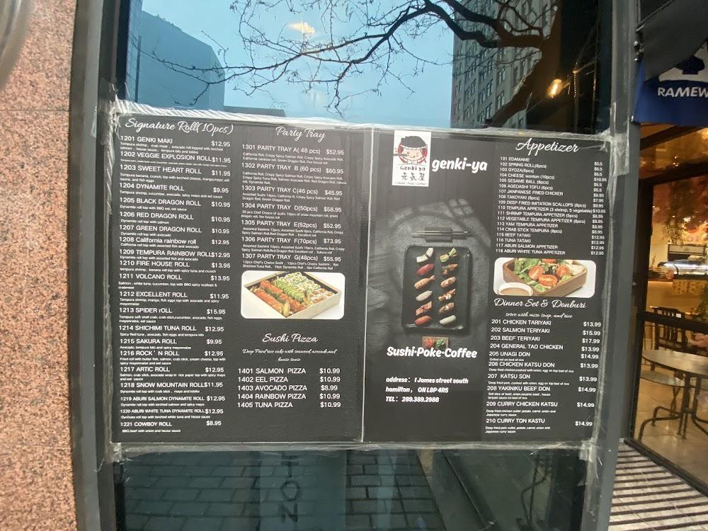 Located at 1 James St S, Genki ya sushi is perfectly positioned in the bustling heart of Hamilton's downtown. This area is known for its vibrant atmosphere, with Jackson Square offering a variety of shopping and entertainment options nearby. The restaurant is wheelchair accessible, making it easy for everyone to enjoy their meals. Parking is available at a nearby paid lot, which is convenient for those driving in. Genki ya sushi is open daily, serving both lunch and dinner, and is popular among the locals for quick bites or leisurely meals. The casual ambiance, with its comfortable seating and warm decor, invites diners to relax and enjoy their food. Whether you're grabbing a quick takeaway or enjoying a sit-down meal, Genki ya sushi fulfills every sushi craving in a welcoming setting.